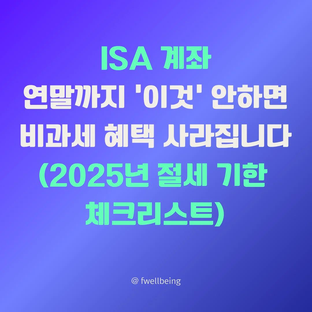 시간이 돈입니다. 12월 31일, 이 날짜가 지나면 당신의 ISA 계좌 비과세 혜택 일부가 공중분해됩니다. 연말은 재테크의 성패가 갈리는 중요한 시기입니다. 특히 ISA 계좌(개인종합자산관리계좌)는 국내 투자자가 누릴 수 있는 가장 강력한 절세 수단이지만, 이 혜택을 계속 유지하고 다음 단계로 넘어가기 위해서는 반드시 연말 기한을 체크해야 합니다.