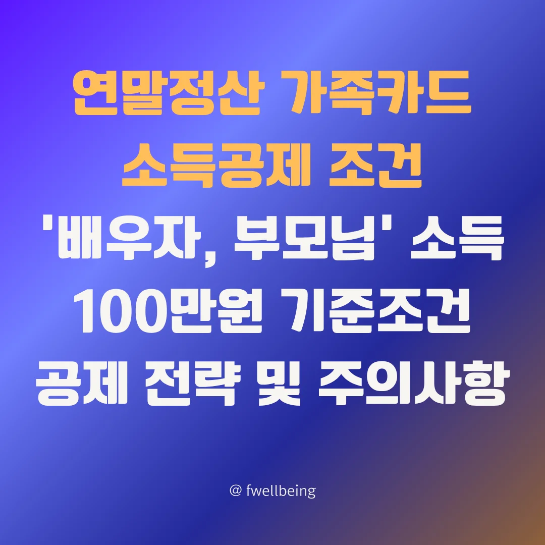 가족카드를 제대로 활용하지 못하면 매년 받을 수 있는 신용카드 공제 혜택의 절반을 놓칠 수 있습니다. 신용카드 소득공제는 카드 명의자인 본인에게 연말정산에 반영되는 것이 기본 원칙입니다. 따라서 가족카드 사용액 전체는 카드 명의자에게 합산됩니다. 다만, 배우자나 부모님(직계존속) 등 가족 구성원의 소득 및 나이 요건을 충족해야만 가족카드 사용액이 명의자의 소득공제 대상에 포함됩니다. 오늘은 연말정산 가족카드 소득공제 조건, '배우자, 부모님' 소득 100만원 기준조건, 공제 전략 및 주의사항을 상세하게 알려드리겠습니다.